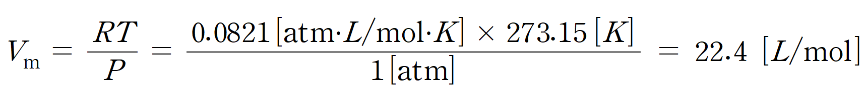 이상기체의 1몰 부피는 STP조건(온도, 압력)과 기체상수를 이용하여 쉽게 구할 수 있다.