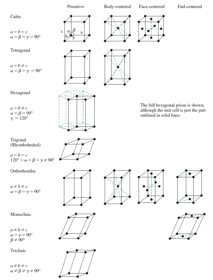 대학이나 학과 커리큘럼에 따라 정도의 차이는 있겠지만, 일반화학 수준에서는 보통 입방정계(cubic system)와 육방정계(hexagonal system) 정도를 다룬다. 사실 입방정계만 제대로 이해했다면 전체적인 고체 배열이나 쌓음 원리 등에 대해 설명 가능하다.