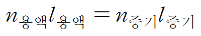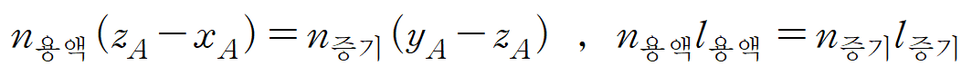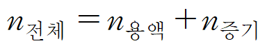 * 용액과 증기가 평형을 이루고 있는 상태를 가정하자. 이 때, 용액의 양은 n 용액, 증기의 양은 n증기라 표현했을 때, 해당 평형계 안에 전체 물질의 양은 n전체로 나타낼 수 있다. (1)
