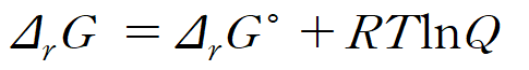 그래프의 순간 기울기의 의미를 갖는 반응 자유에너지(ΔrG )는 반응계를 구성하는 물질 분율에 영향을 받는다. 또한 평형의 위치는 물질 분율과 표준 반응 자유에너지에도 영향을 받는다. 결국 이들 사이의 관계를 나타낸 식이 다음과 같다.