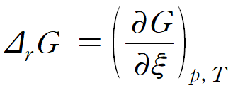 반응 자유에너지 (ΔrG )는 일정 압력, 온도 조건에서 반응계의 총 자유에너지(G)를 반응 진척도(ξ)에 대해 도시한 그래프의 기울기(도함수)를 뜻한다.