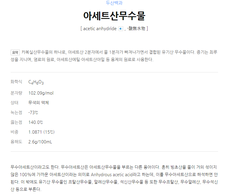 무수 아세트산과 아세트산 무수물의 차이 -끝-