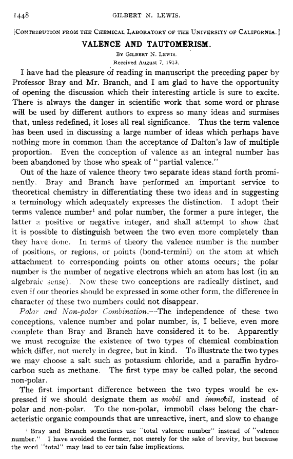 [3] Gilbert N. Lewis, "Valence and Tautomerism", J. Am. Chem. Soc. (1913) 35(10): 1448-1455