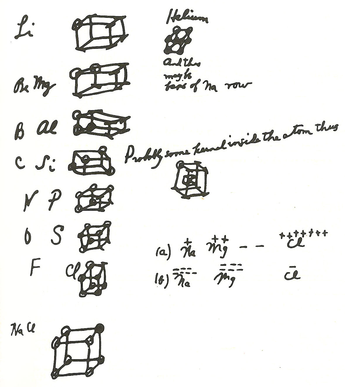 이 논문에서의 한 가지 특징적인 점은 자신이 개발한 입방체 원자 모델에 대한 언급이 전혀 없다는 것인데, 자신의 입방체 모델이 물질의 결합까지 설명할 수 있는 충분한 체계를 갖추지 못했다고 생각했기 때문으로 보인다.