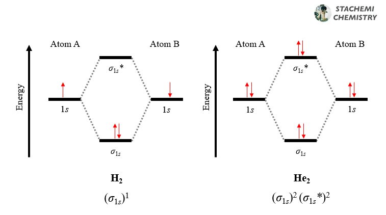 이들 원자는 1s 오비탈 전자만 갖기 때문에, 1s 오비탈 간 선형조합만으로 쉽게 분자(H2, He2) 오비탈을 나타낼 수 있다. ( σg,1s , σ*u,1s )