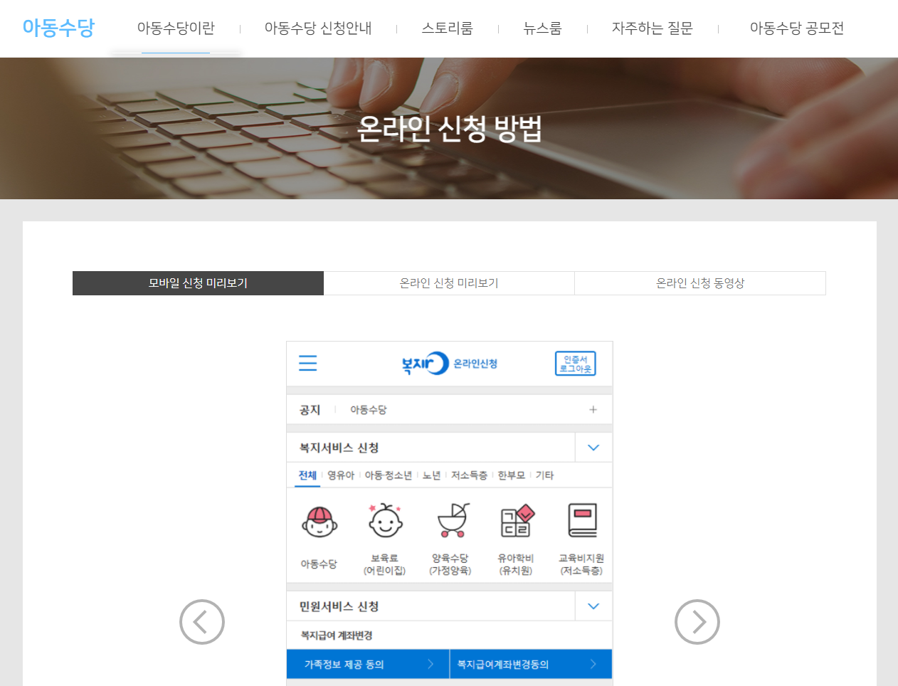 [아동수당]과 마찬가지로 [양육수당] 신청은 복지로 홈페이지에서 온라인으로 가능한데, [양육수당]과 [아동수당]은 중복하여 지급 받을 수 있다. 만약, 첫 아이가 태어났다면, 아동수당 10만 원과 양육수당 20만 원을 지원받을 수 있다.