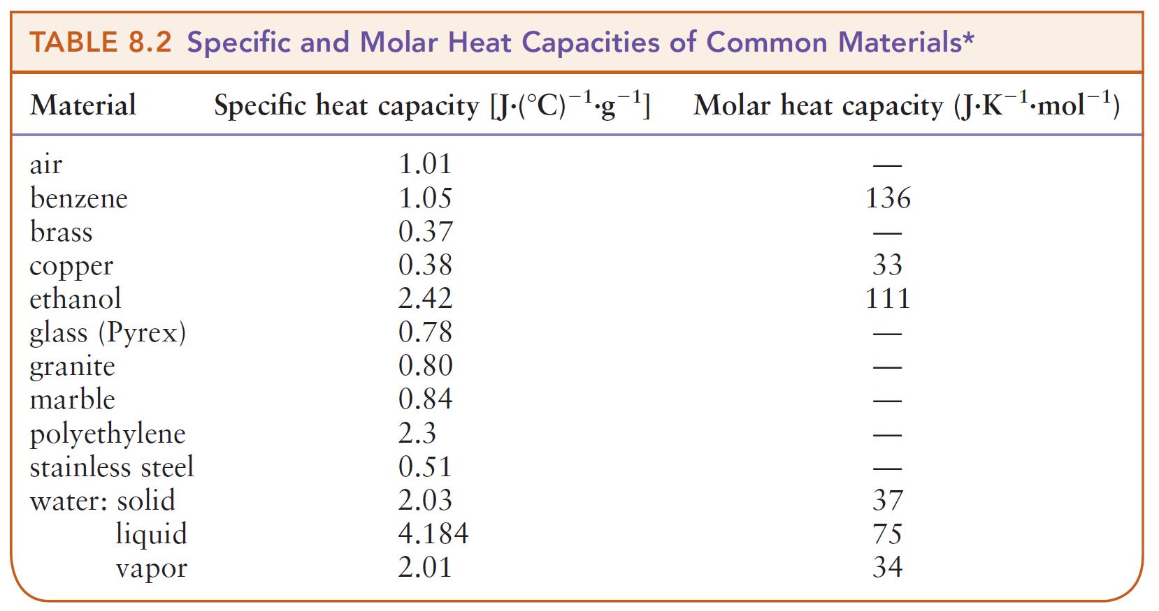 Q = c ×m ×ΔT = C ×ΔT = n ×cm ×ΔT