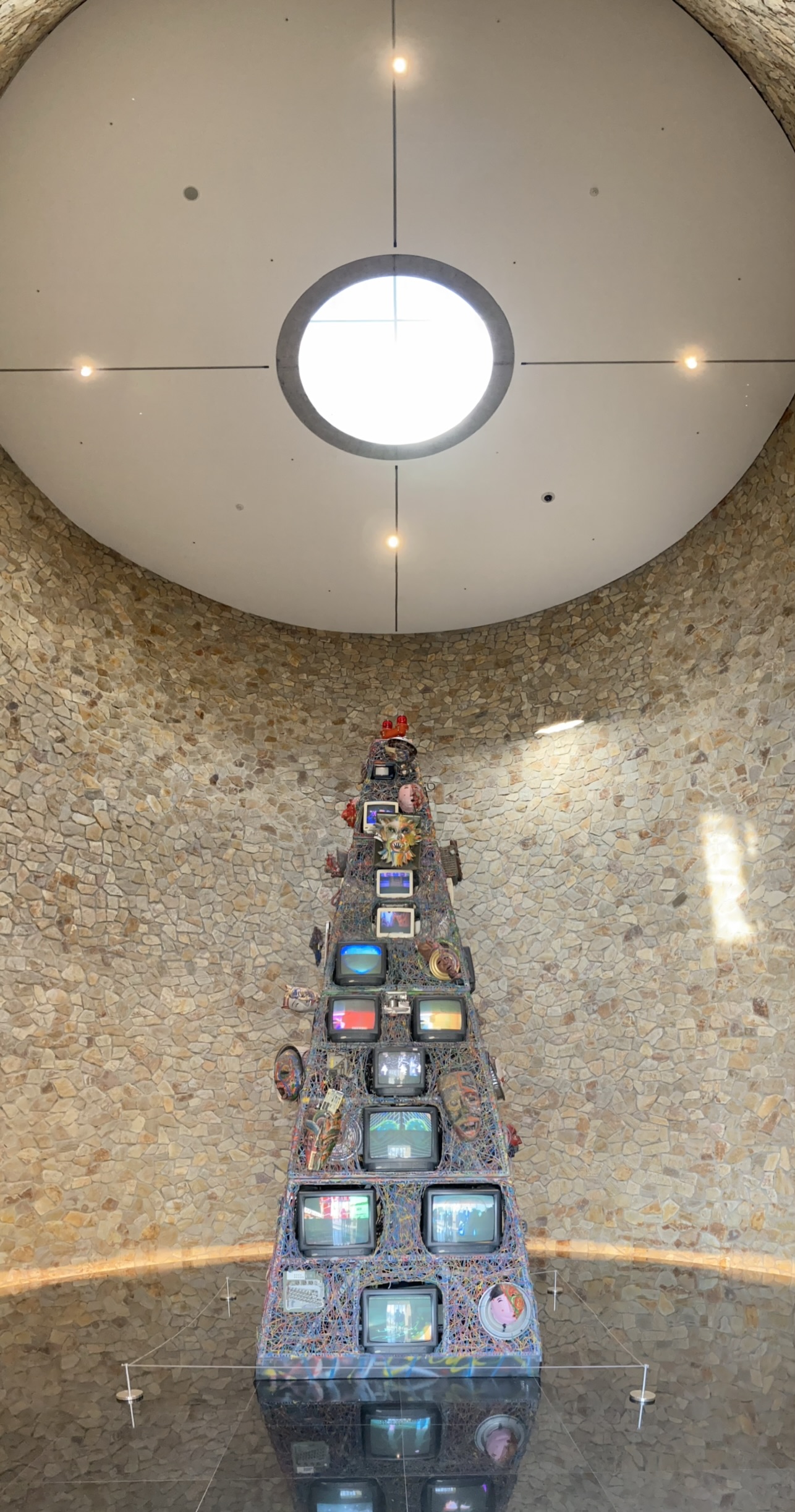 사실, 본관에서 이런저런 설명을 듣느라 사진을 많이 찍지 못했다. 설명 사이의 셔터음이 분위기를 깰 것 같았다. 그래도 2층 그리드 창 사이로 보이는 스톤 가든은 꼭 사진으로 남기고 싶어서 하나 남겼고, 백남준 님의 '커뮤니케이션 타워'는 해설사님의 설명이 마무리된 장소여서 시간적 여유가 있어 사진으로 남겼다. '커뮤니케이션 타워'는 세로 파노라마로 찍어서 나름 공간감 느껴지게 잘 건진 것 같다.