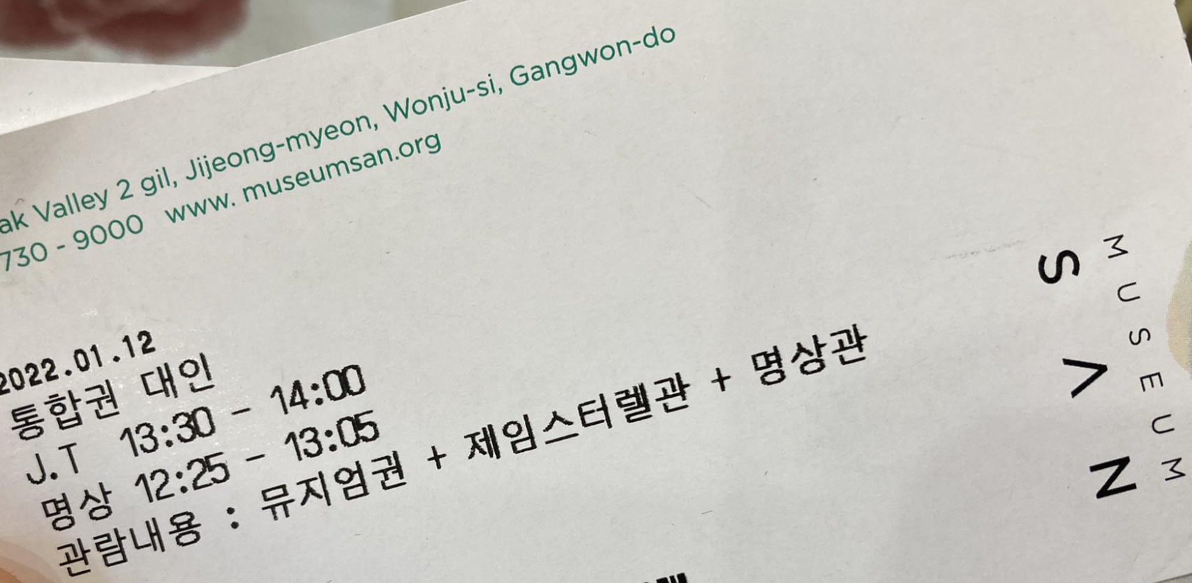 모처럼 시간 내서 온 김에 다해보기로 했다. 와이프랑 둘 뿐이고, 특별한 계획도 없어 시간도 넉넉하고! 제임스 터렐관 관람과 명상관 프로그램까지 모두 예약했다. 통합권 결정! 뜻밖에 강원도민 할인에 기분이 좋아졌다.