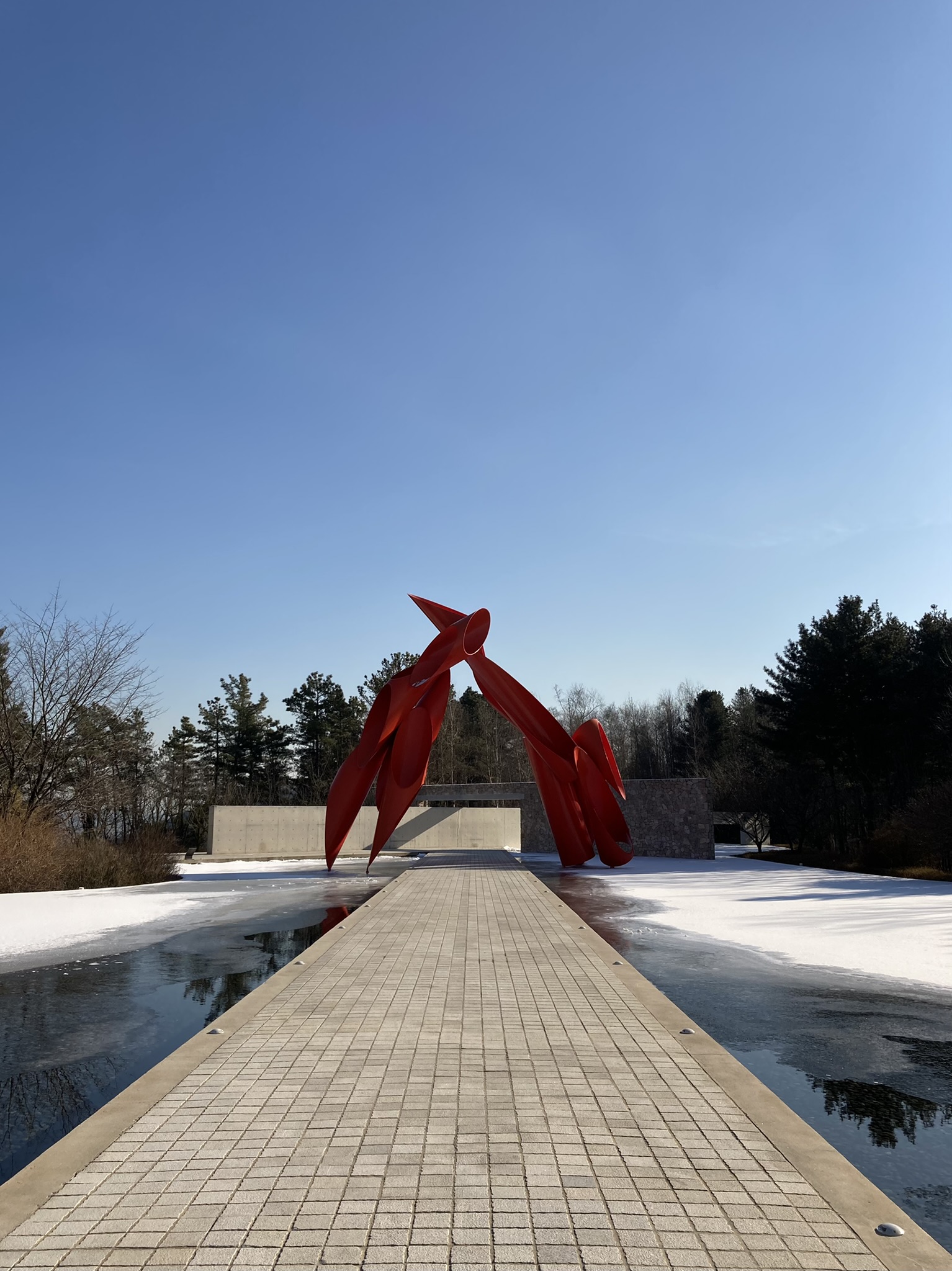 황조롱이 조형물을 지나면 자작나무 길이 나오고, 워터 가든이 나온다. 워터가 다 얼어서 살짝 휑하지만, 그래도 시그니처 조형물인 펜네 파스타 열 두 조각이 아닌, '아치 웨이'가 있다. 아침 일찍 시간대에, 날씨도 추워서 방문객 자체가 적어 사진 찍기에는 좋았다.