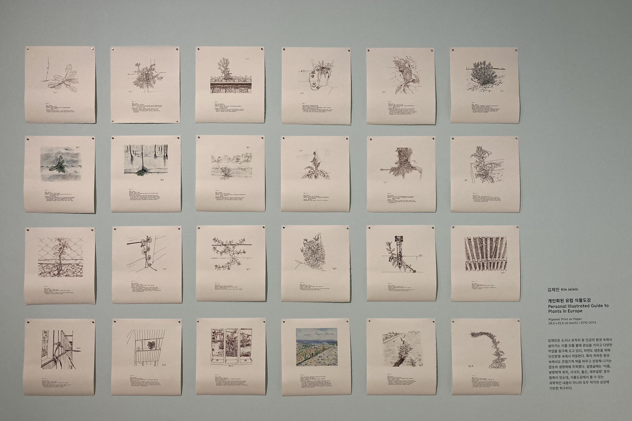 개인적으로 기억에 남는 것은 김제민 작가님의 <개인화된 유럽 식물도감> 작품이었는데, 유쾌하신 분인 것 같았다. 유럽에서 관찰한 이름 모를 식물들 24종을 도감으로 그럴듯하게 기록해놨는데 '이 식물 정보를 어찌 다 찾아서 이렇게 만들었을까?' 하던 찰나에 작품 설명글을 보니, 도감 내 기록된 이름, 식물 분류학적 위치, 서식지 등의 내용이 모두 과학적 사실과는 무관한 작가의 허구란다...ㅎㅎ 김제민 작가님의 다른 작품들도 보는 이의 뒷통수를 치는 센스가 여럿 있었다.