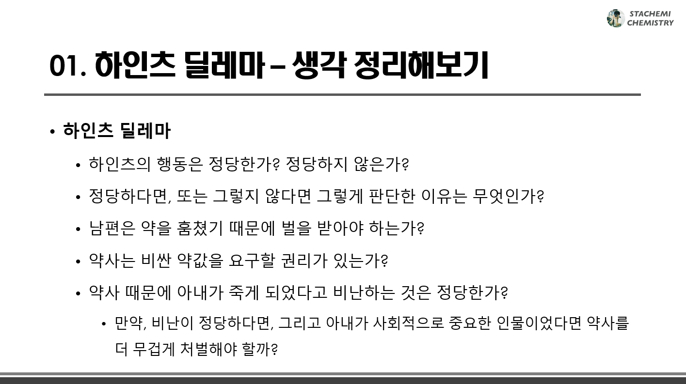 사실, 학생들에게 '하인츠 딜레마(Heinz Dilemma)' 상황을 소개하고 싶었던 것이 주제 선정의 가장 큰 이유고, 이를 통해 생각을 엿보고 싶었다.