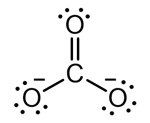 그러나 실제 탄산 이온의 전자쌍 하나는 탄소와 특정 산소 하나에만 치우쳐 존재하지 않고, 탄소와 세 산소 사이에 골고루 분포한다. 하나의 루이스 구조식만으로는 이렇게 여러 영역에 비편재화된 전자를 표현하기 어렵다.