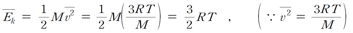위의 평균 제곱 속력(v 2 = 3RT/M )에 대한 관계식을 이용하면, 기체 분자의 평균 운동 에너지(Ek)가 절대 온도(T )에만 비례한다는 사실을 알 수 있다.