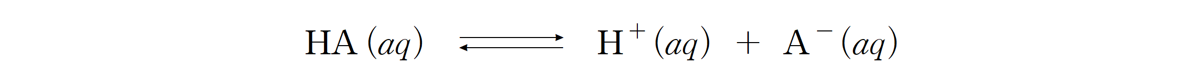 약산(약전해질)은 수용액에서 일부 해리되어 다음과 같은 평형 상태에 도달한다.