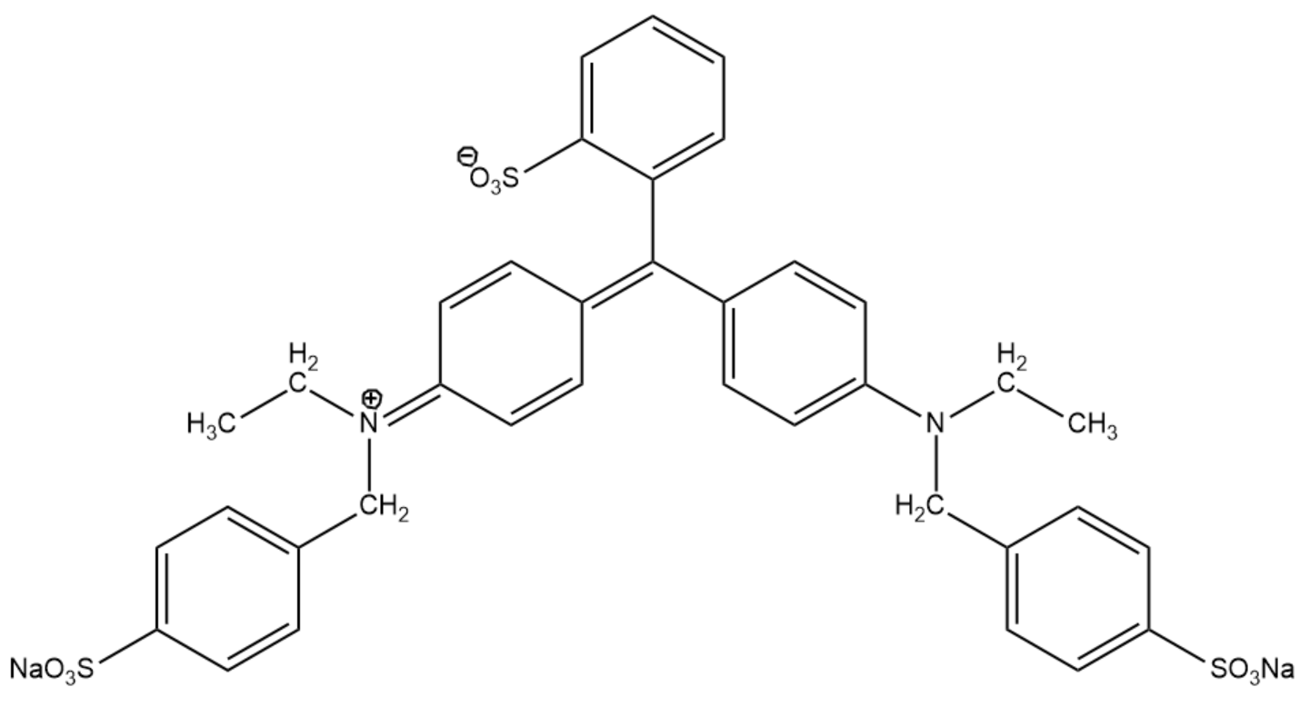 식용색소 청색 1호(FD&C Blue No.1, Brilliant Blue FCF)는 우리 주변에서 식품, 음료, 화장품 등에 흔히 사용되는 합성 색소로, 분자량 792.86의 삼설폰화 트라이아릴메테인(triarylmethane) 계열의 화합물이다. m&m 초콜릿과 파워에이드와 같은 이온 음료에도 모두 청색 1호가 사용되는데, 가시광선 영역 대의 628 nm 부근 빛을 주로 흡수해 푸른색을 나타낸다. 보통은 나트륨염으로 존재하여 물에 잘 녹고, 약간 염기성인 환경에서 더욱 안정적인 편이다.