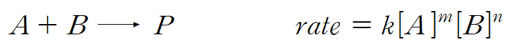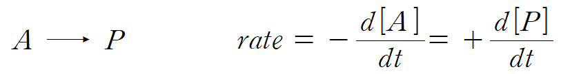 [A ], [P ]는 반응물과 생성물의 몰농도를 뜻하며, t 는 시간이다. 반응 속도는 반응물의 농도, 온도, 촉매의 영향을 받는다.