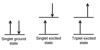 [참고] 형광에서와 마찬가지로 바닥 상태와 들뜬 상태는 0과 1로 구분, 기호 T는 스핀 다중도 3의 삼중항(Triplet)을 뜻한다.
